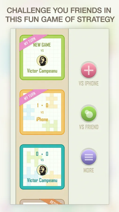 Command your small army of 3 war planes in fights against your friends via GameCenter or against "Frank", the smart brain we put inside your device for single player mode.