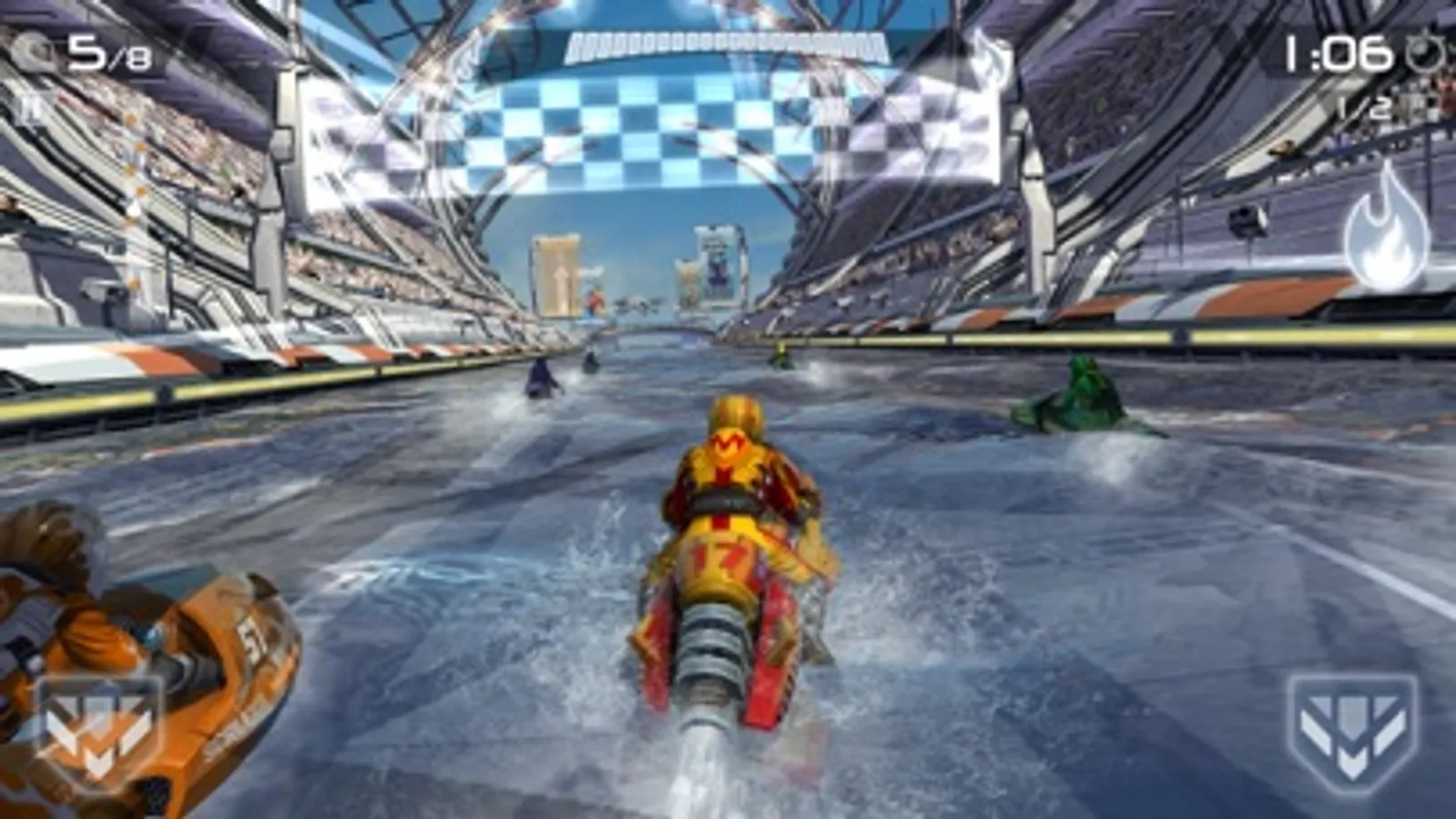 • Collect 9 powerful new hydro jets, and upgrade their performance and colors to gain an edge on your competition.