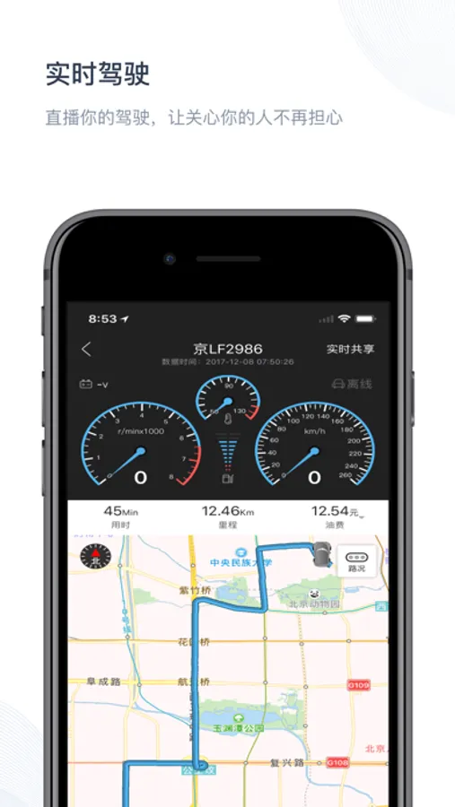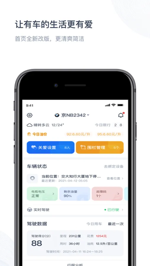 【驾驶数据】将汽车联网,车辆位置、实时驾驶、行车轨迹、里程油耗、点火提醒、行程报告、驾驶行为等信息尽在掌握。