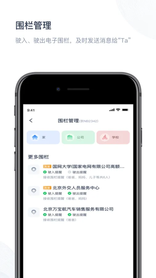 【安防数据】车辆发生故障、异常、震动、点火、水温、电压异常等情况,第一时间通过App推送提醒,安全问题让汽车主动告诉你!还可设置电子围栏,驶入、驶出范围自动提醒,对汽车动态了如指掌。