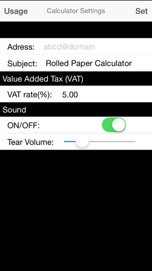 you can set the data of address , subject , volume of sound and VAT rate (Default 5%).