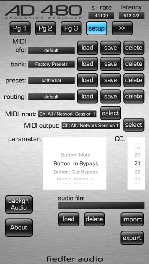 - professional preset management for MIDI, audio routing and reverb settings