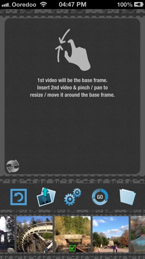 * Use finger panning gesture to resize the videos relative to the base frame video as you desire.