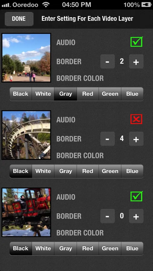 * Create border on each video with selectable color and thickness.