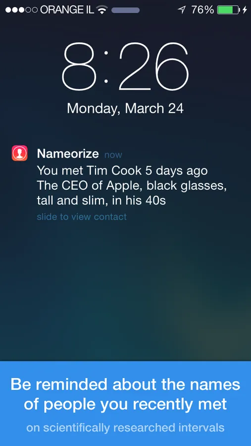 Nameorize helps you memorize the names of all your friends and colleagues.