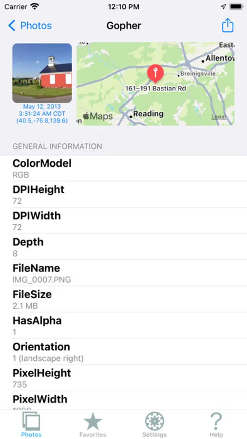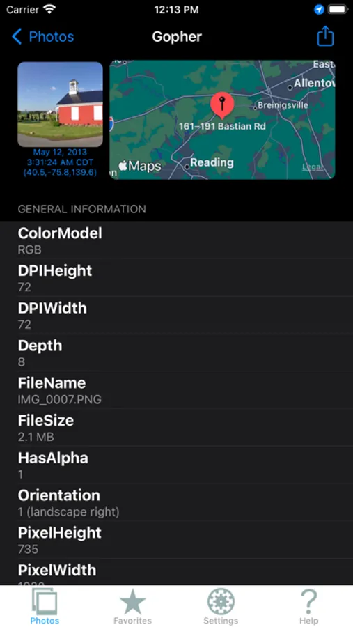 Once a picture is chosen a Gopher view appears that shows an image thumbnail, detailed metadata, and a map centered on the location where the picture was taken, assuming the picture has a geotag with GPS coordinates. These location coordinates (latitude,longitude) are automatically copied to the pasteboard, which you can paste into Maps. You may also manually copy any other asset metadata ferreted-out by the Gopher (long-press for iOS, control-click for macOS).