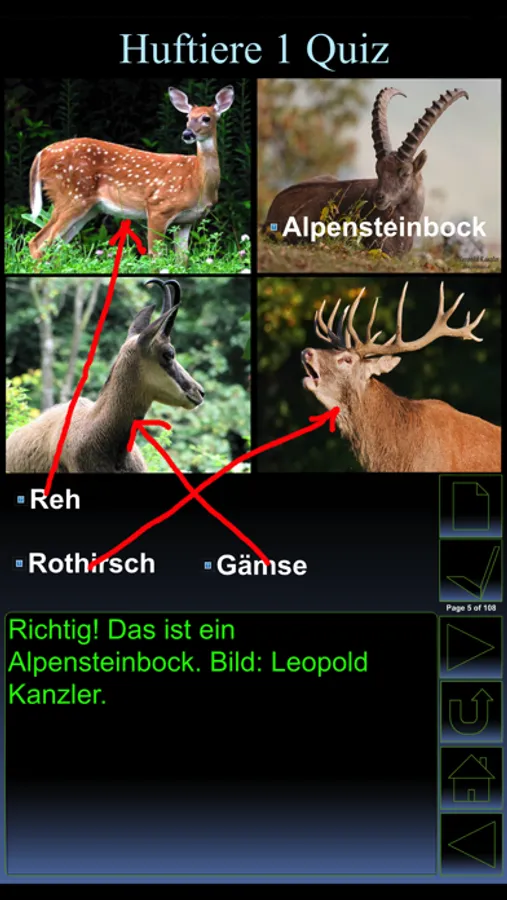 If you are not sure at all, you may use the 'cheating aid': if you press the according button, you get to see one by one the names of the animals for few seconds.