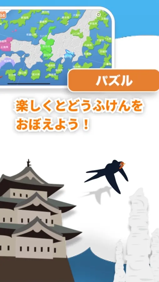 パズルを遊ぶことで、都道府県の位置や、県名を覚えることができます。
