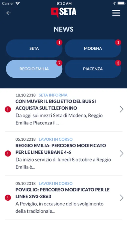 L’app di Seta è completamente rinnovata: da oggi puoi rimanere informato sui servizi di trasporto pubblico locale automobilistico dei tre territori provinciali di Modena, Reggio Emilia e Piacenza (linee, percorsi, tariffe, rivendite) e puoi consultare le nostre news in tempo reale.