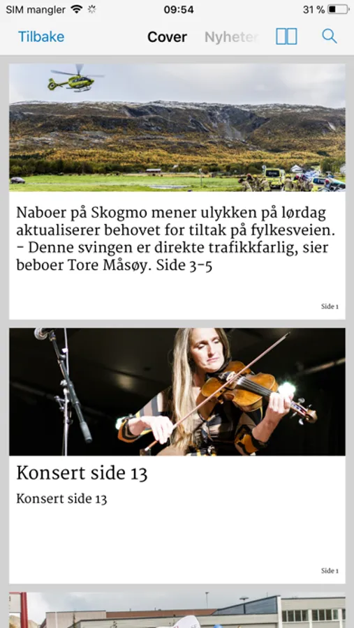 - Mulighet for å bla gjennom sidene, zoome inn på bilder og artikler.