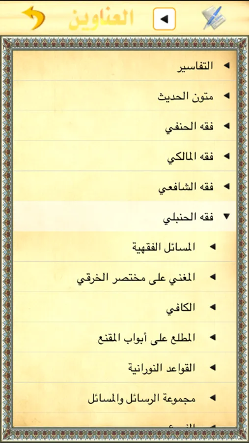 فقه الحنبلي: المسائل الفقهية - المغني على مختصر الخرقي - الكافي - المطلع على أبواب المقنع - القواعد النورانية - مجموعة الرسائل والمسائل - الفروع - شرح الزركشي - المبدع شرح المقنع - الانصاف - دليل الطالب - كشاف القناع عن متن الإقناع - أخصر المختصرات - كشف المخدرات - منار السبيل - العدة في أصول الفقه - مجموع فتاوى ابن تيمية - شرح منتهى الإرادات - وكتب أخرى...