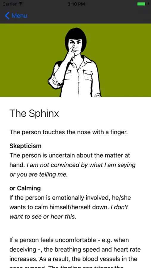 The concise information for each gesture makes it easy to learn and understand their meaning. Thus, the app offers quick learning success. No one needs to read these 1000 pages anymore.