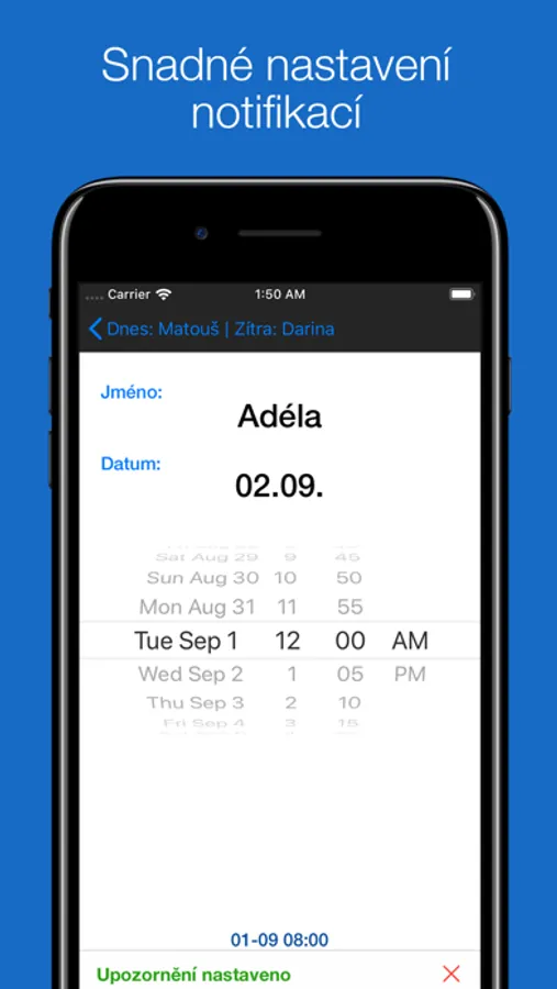 With the "Svátky" ("Name Days") application you will never forget the name days of your relatives and friends. The application offers you your own time and date notifications for the each name. The names are ordered by the date and alphabetically. The notification extension with the name for actual and also for the next day. Apple Watch support.