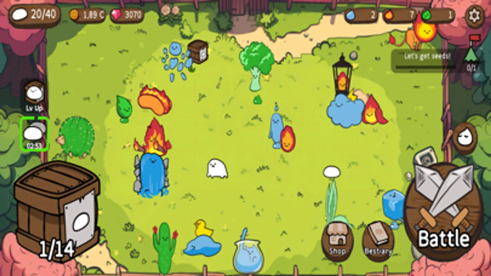 - Open slime boxes and merge identical slimes to discover new varieties.