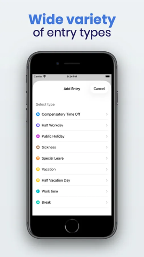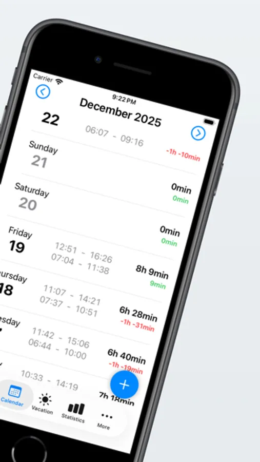 - Manual entry of holidays and vacation days