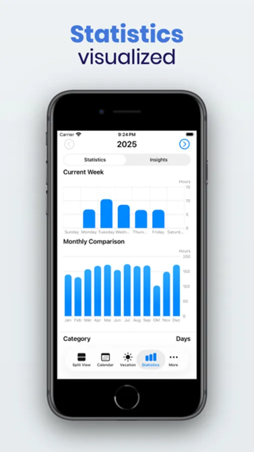 - Visual statistics with comprehensive overview of all absences (sickness, vacation, etc.)