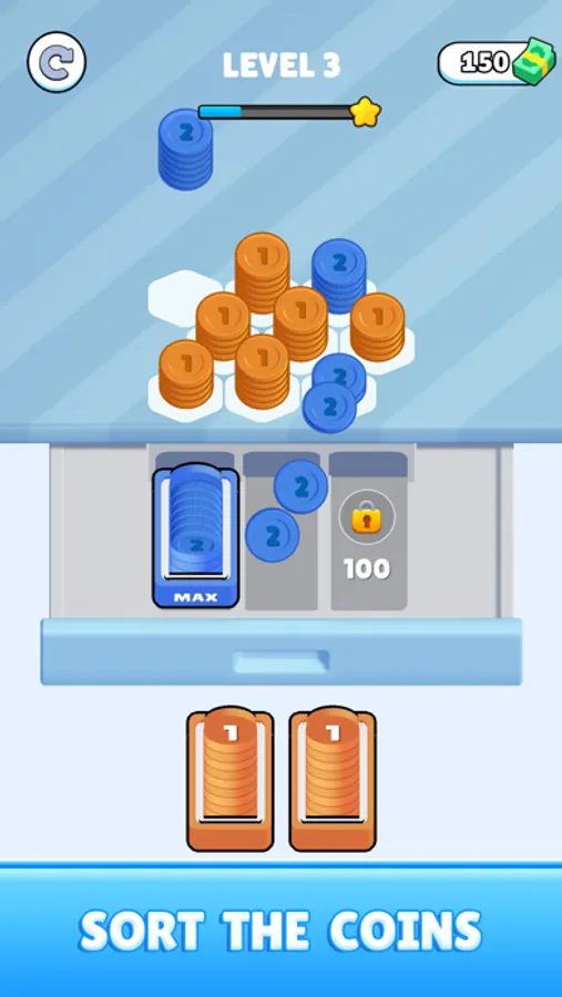 Dive into free, addictive grid gameplay—sort and merge coins stacks to clear the board. Challenge your skills and rack up rewards. Perfect for all ages!
