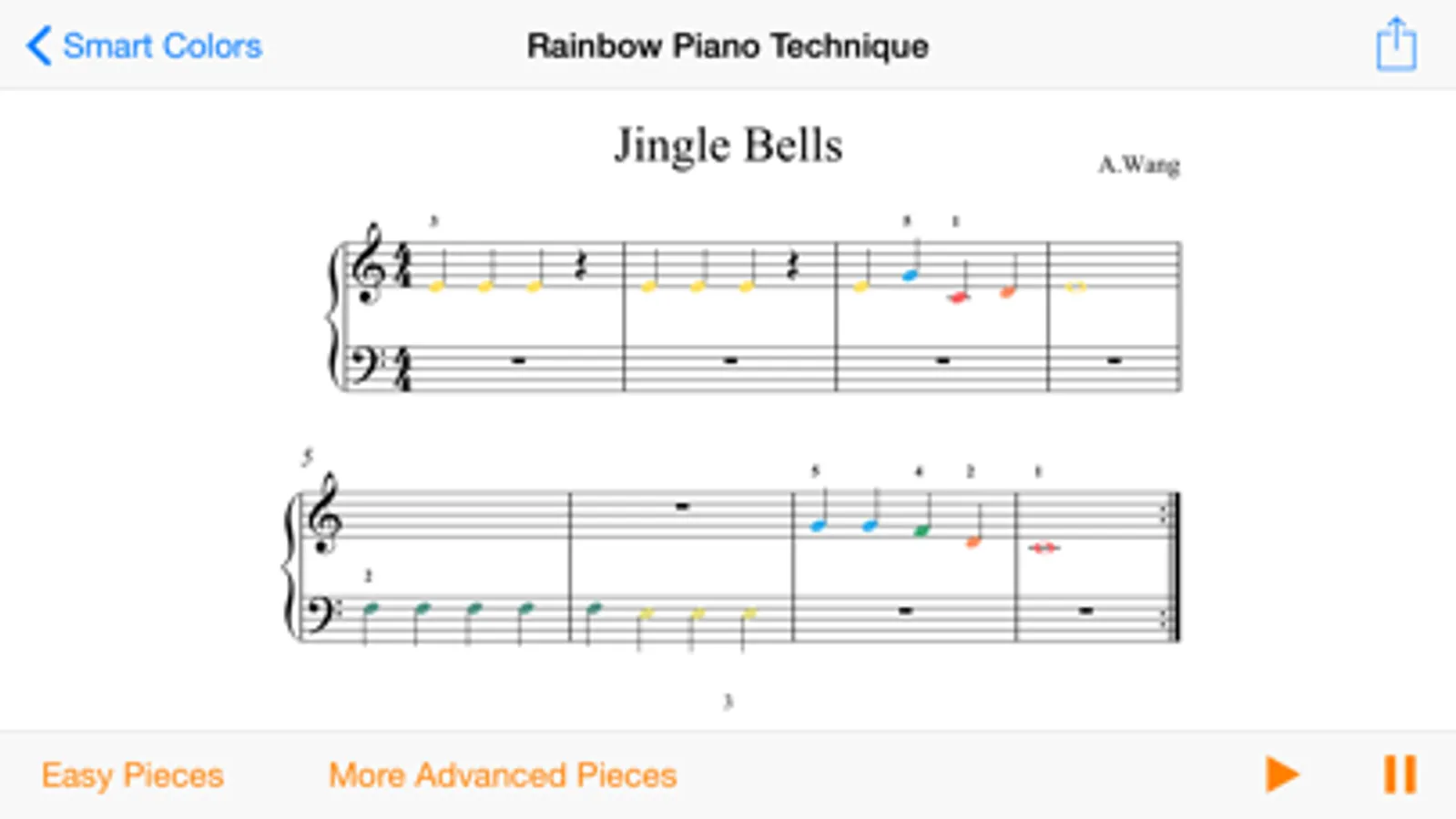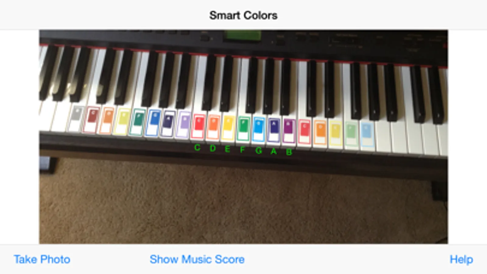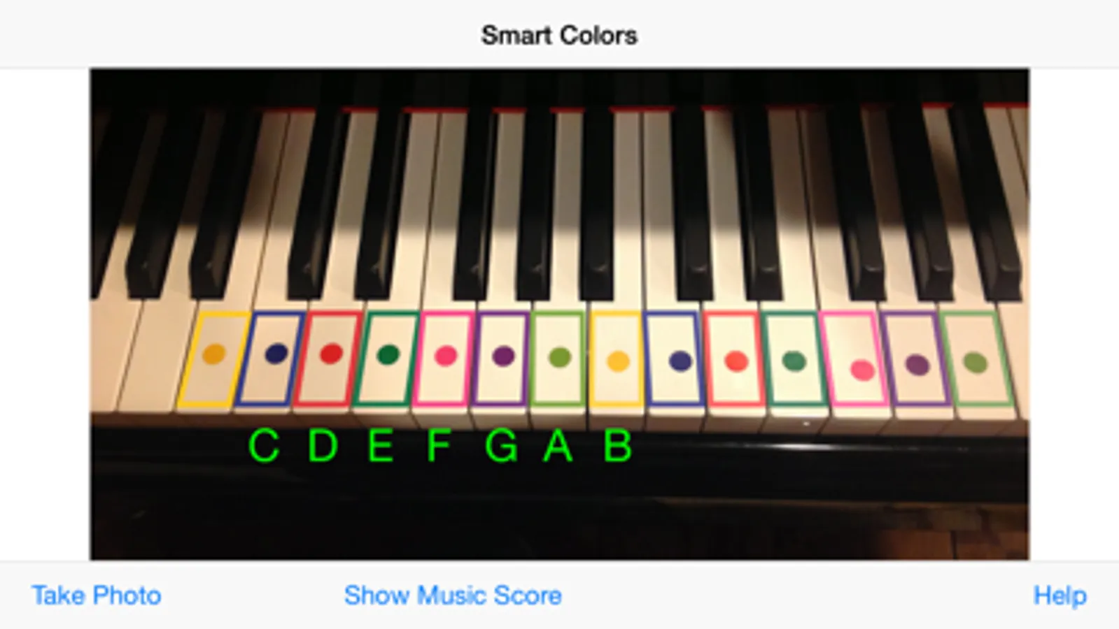 Smart Colors eases your or your students entry into piano playing through the use of colors. To get started, attach your favorite colored stickers onto a piano keyboard, use the app to take a picture of the keyboard, and Smart Colors automatically finds the colored stickers and creates music scores with notes of corresponding color.