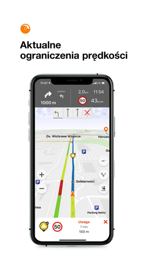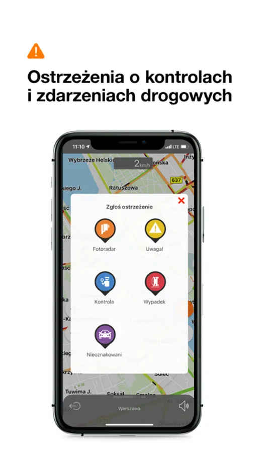 Nawigacja Orange to niezastąpione wsparcie podczas podróży! To drogowy asystent kierowcy, z którym omijasz korki oraz podróżujesz bezpieczniej. Dzięki zgłoszeniom CB od innych kierowców o sytuacji na drodze oraz alertom po przekroczeniu dozwolonej prędkości wiesz, że na drodze nic, ani nikt Cię nie zaskoczy.