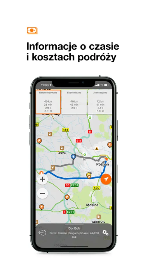 - codziennie aktualizowane mapy, uwzględniające nowe odcinki dróg, zmiany organizacji ruchu oraz trwające remonty,