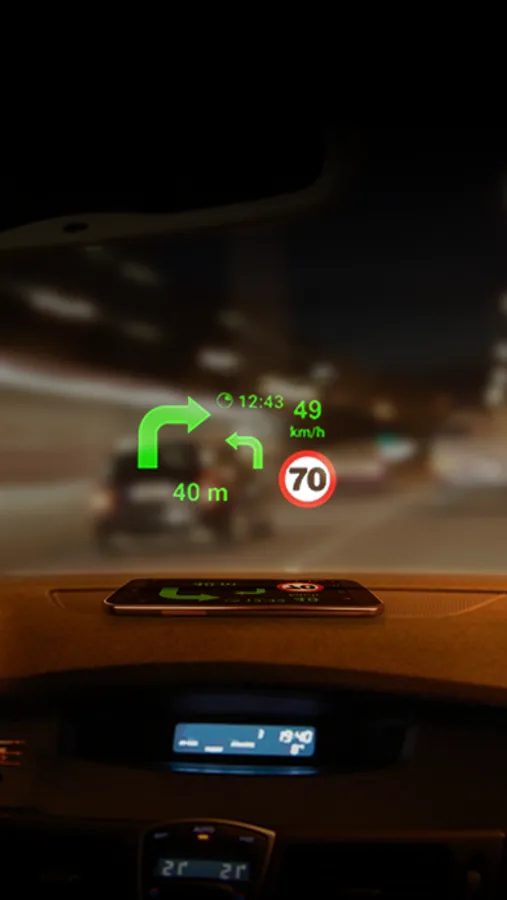 - HUD – możliwość odbicia w przedniej szybie uproszczonego ekranu nawigacji.