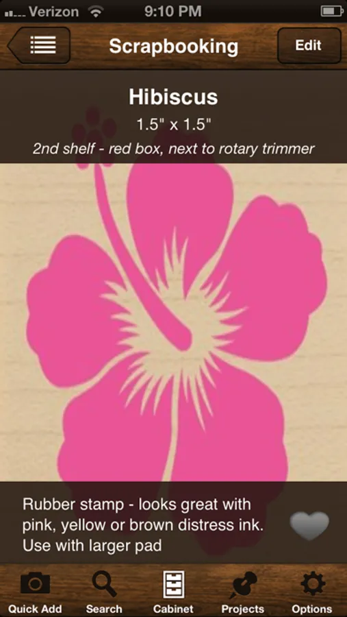 Craft Cabinet will organize all of your scrap booking, art and craft supplies in one place! Sort items into customizable cabinets and drawers along with pictures, descriptions, locations and notes on your supplies. Track projects with the Craft Cabinet project feature and never be unorganized again!
