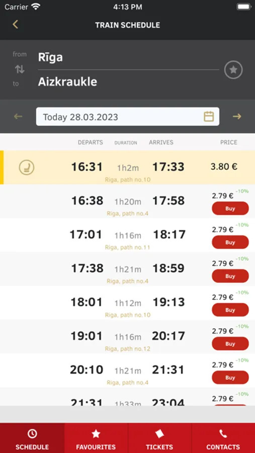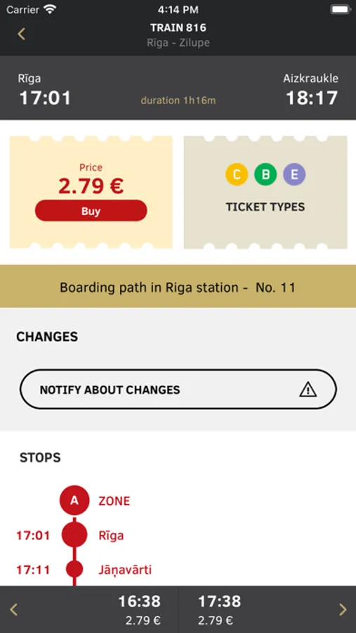 The application provides an opportunity to get all the latest information related to the railway traffic in Latvia: