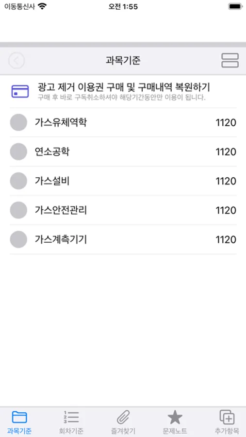 과목별 보기와 회차별 보기를 선택할 수 있습니다.