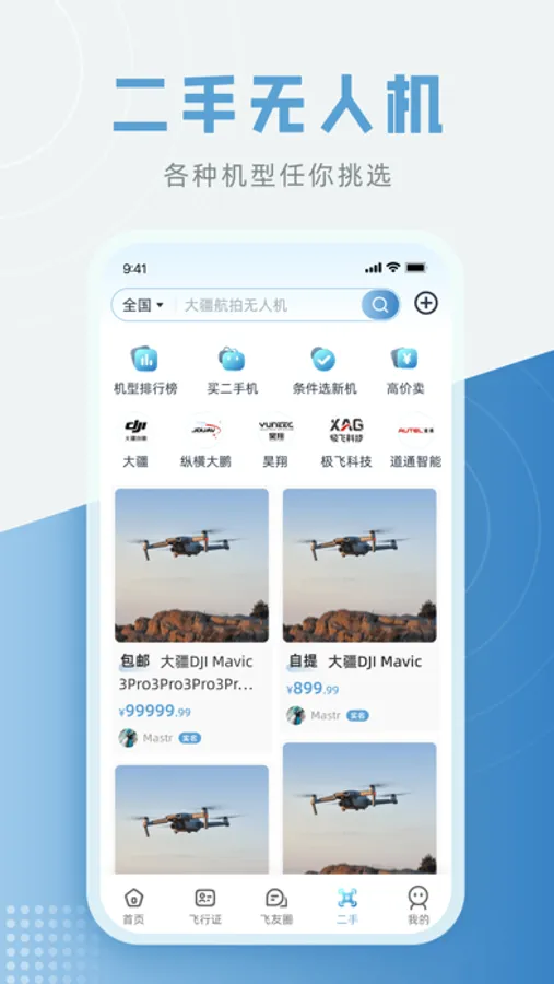 无人机行业生态标杆上线!一站式聚合行业资讯、机型评测、飞友圈社交及短视频创作,更有正品无人机交易平台与二手无人机交易市场。实时更新技术动态,覆盖航拍技巧、飞行培训、设备交易全链路,打造无人机爱好者专属生态圈。即刻下载,开启你的低空探索之旅!