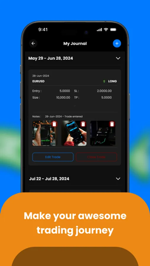 Comprehensive Trade Logging: Effortlessly log all your trades, including entry and exit points, trade size, and outcomes. My Journal makes it easy to keep a detailed record of your trading activity.