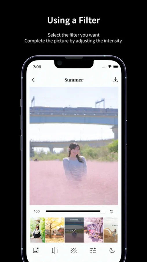 • Provides detailed features such as - Apply filters to photos, adjust filter intensity, photo detail correction, film look effect