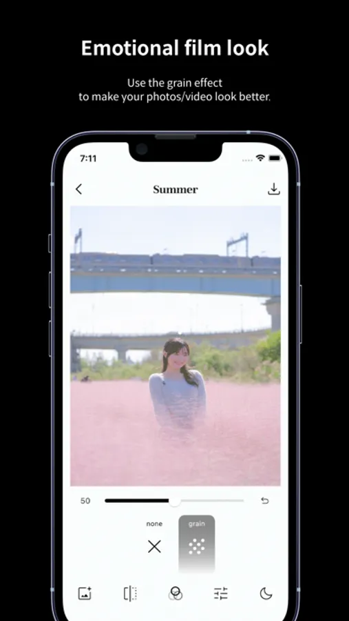• Change your photos with the grain film look effect