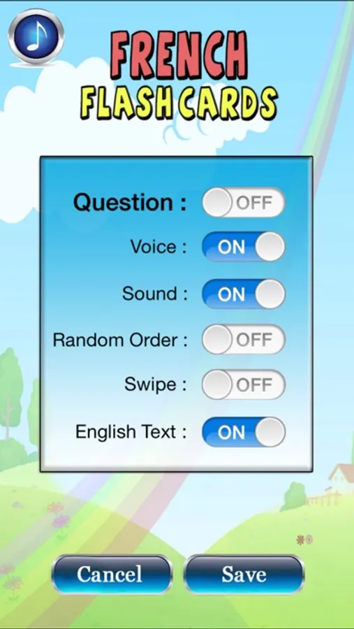 Parents have the option to turn voiceovers off during parent-child learning session and turn voiceovers on when the child is self-learning. They can enable Question Mode to display 4 images and ask the child to click on the right answer. Complexity of words is perfect for ages 1 to 4 so two or more young siblings can play together and even teach eachother!