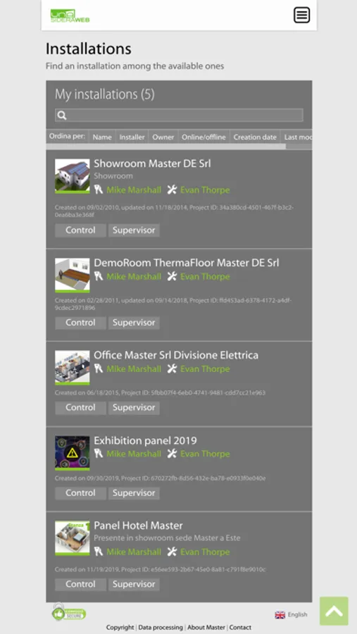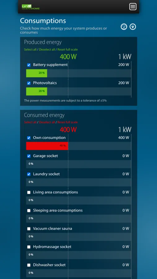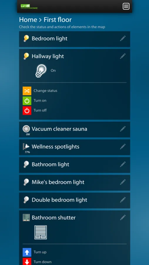 Using your smartphone or tablet, you can turn lights on and off, adjust the temperature, raise and lower the shutters at home, quickly and easily. If you are connected to your home's Wi-Fi network, the app will automatically connect to SideraHome, the user interface to control the system from inside the home, while if you are in the office or away from home, the app will will automatically connect to SideraWeb, the site that allows you to control the system remotely.
