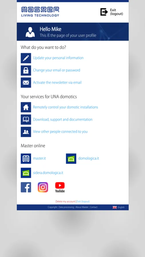 Warnings: the use of the application and all the control functions is subject to the presence of a UNA Automation system of the Master Divisione Elettrica, with Vesta board and connection to a local Wi-Fi network and / or the Internet.