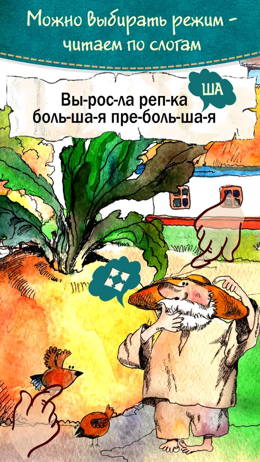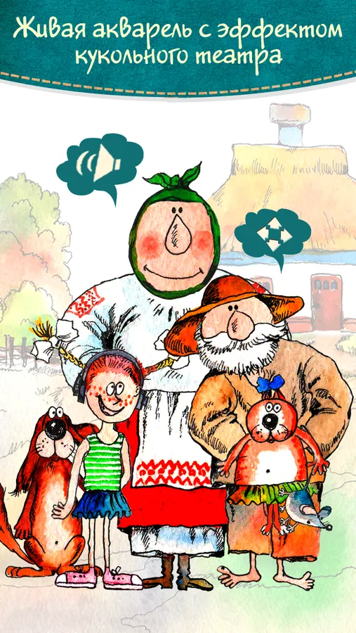 Это «живая» сказка для детей. Она покорит юных читателей обилием интерактивных элементов, веселым акварельным оформлением, развивающими играми, возможностью перемещать несколько персонажей одновременно, прикольной озвучкой. Слушай, читай, играй сказочными героями, создай и запиши свой кукольный мультфильм, поделись им с друзьями, сделай свою сказку. Для всех детей от 2 до 70.