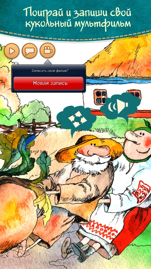- новая технология – создай свой мультфильм легко и просто: нажми запись и создай свою версию сказки;