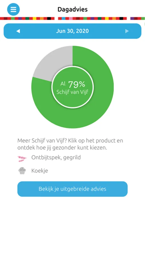Mensen die graag meer volgens de Schijf van Vijf willen eten, bieden we een Schijf van Vijf-advies aan. Daarin krijg je te zien hoeveel jij al eet volgens de Schijf van Vijf en krijg je tips hoe je gezonder kunt kiezen.