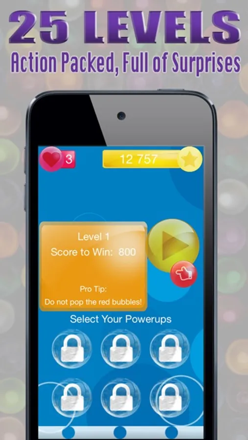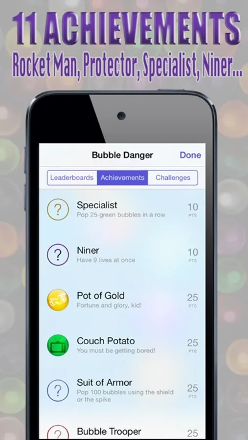 • Enables higher levels of difficulty, which include new bubbles and Power-Ups