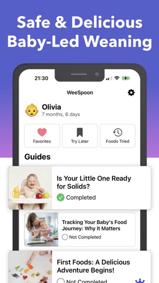 We're here to support you every step of the way, from first bites to family meals. Get expert advice, personalized meal plans, and over 500 delicious recipes to help your little one thrive.