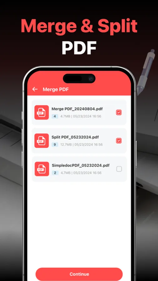 · Merge & Split: Combine multiple PDFs into one or split a large file into separate documents.