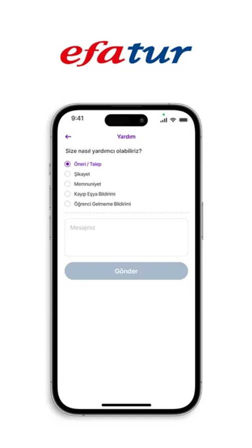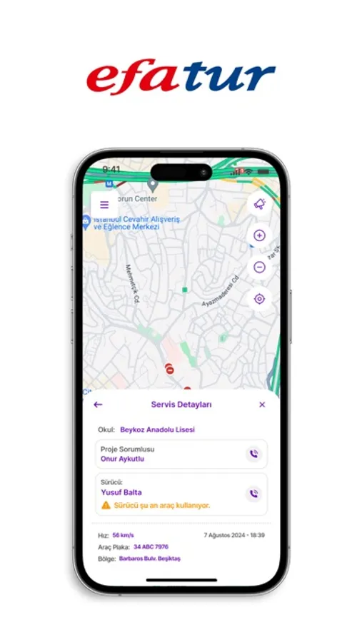 Efatur Servis, öğrenci servis hizmetlerinizi daha güvenli ve verimli hale getirmek için tasarlanmış bir konum takip ve mesafe kontrol uygulamasıdır. Uygulama, öğrencilerinizin anlık konumlarını takip etmenizi ve bu konumların servislerine olan uzaklıklarını kolayca kontrol etmenizi sağlar. Böylece, servislerin zamanında ve güvenli bir şekilde ulaşmasını sağlarken, herhangi bir olası gecikmenin önüne geçebilirsiniz.