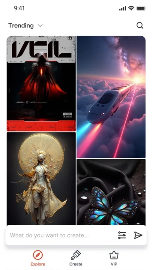 Your inspiration deserves to be seen by the world! Download Artwave now and use our cutting-edge AI technology to transform your vision into cool art. Imagine creating art with just words, no extra tools needed. Isn't that amazing?