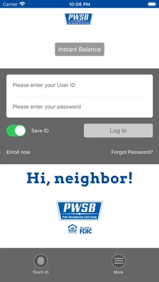 With your Port Washington State Bank Personal Mobile Banking app, managing your finances from your iPhone device is easier and more convenient than ever. That’s because you can perform everyday banking functions securely on the go. Port Washington State Bank (PWSB) lets you check your balances, review transactions, transfer funds between PWSB accounts, receive alerts and more. You can also find the nearest PWSB branch or ATM location.