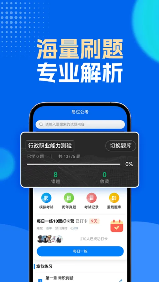 易过公考系统是一款专门针对事业单位公务员招聘考试的专业题库练习软件。该软件致力于帮助考生高效备考,提供全面的每日一练、题库练习、模式试卷、历年真题等功能,让考生在复习过程中高效备考。