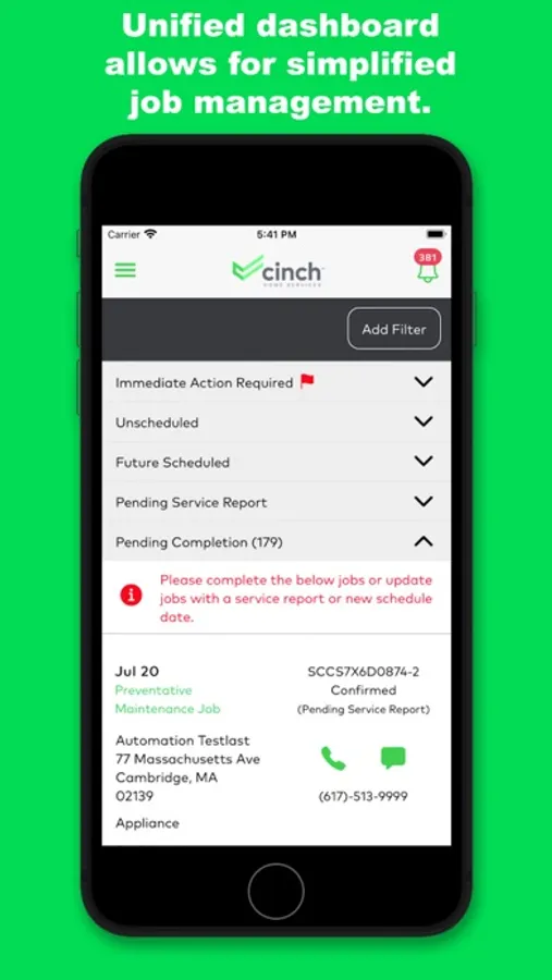 The CinchPro mobile app enables your company and technicians to view and update warranty service jobs assigned to you from Cinch Home Services, all with an app in your pocket!