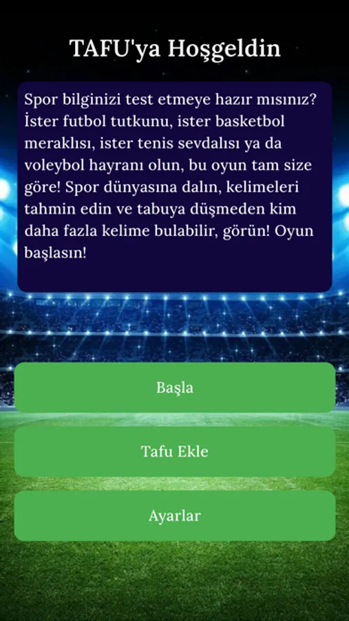 İster sıkı bir spor hayranı olun, ister sadece keyifli vakit geçirmek isteyen biri, bu uygulama herkes için mükemmel. Oynayın, yarışın ve spor temalı en iyi Tabu oyununu her zaman, her yerde yaşayın!
