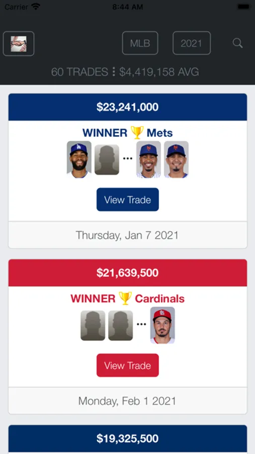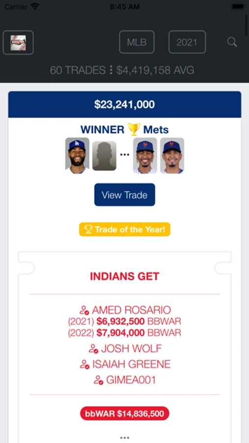 MLB trades are evaluated by seasonal performance (bbWAR) that each player accumulated with their new club. The bbWAR is added up and the winner is declared.