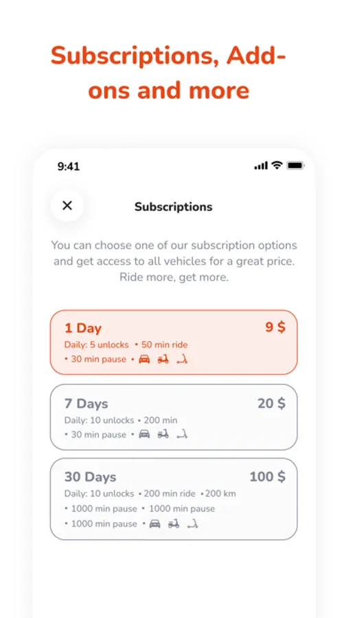 Rent an e-scooter or e-bike with just a tap on your phone. An easy, fun and eco friendly way to move around this beautiful area.