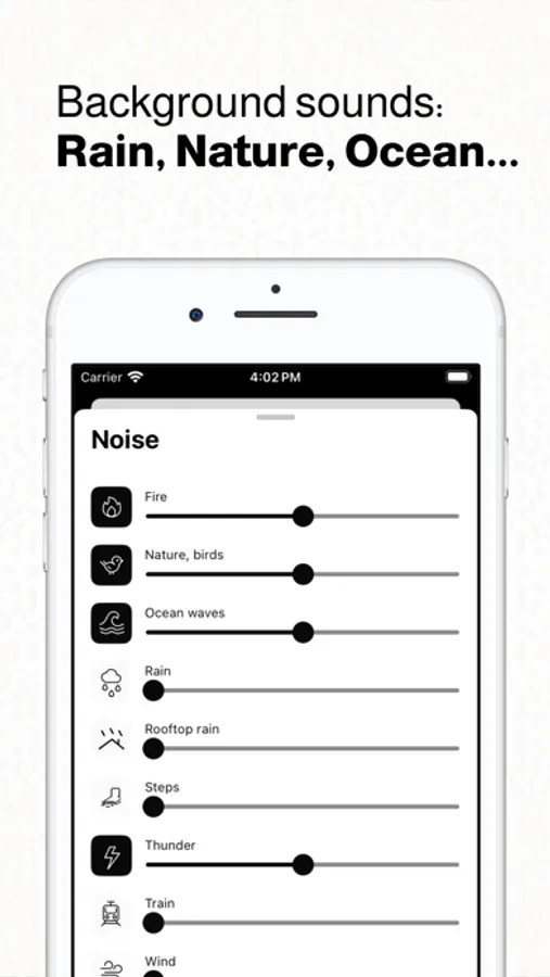 Nature & White Noise Sounds: Rain, ocean waves, thunder, forest sounds & more.
